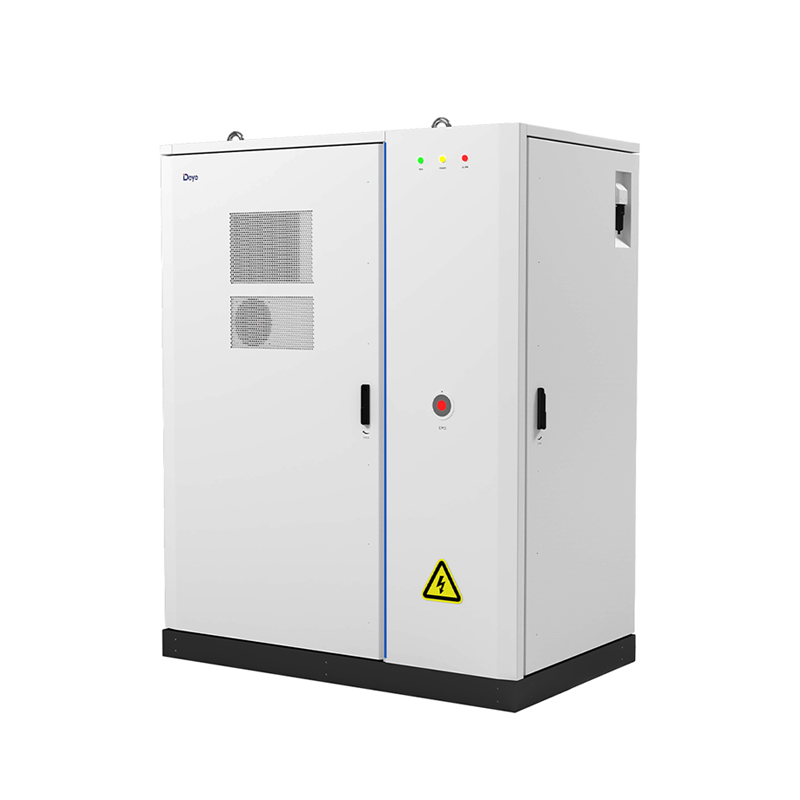 The Deye GE-F120 series adopts a high-voltage three-phase hybrid inverter integrated within an all-in-one energy storage system. This inverter is designed for both on-grid and off-grid applications, enabling seamless switching between solar, battery, and grid power sources.
